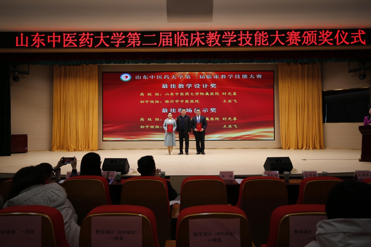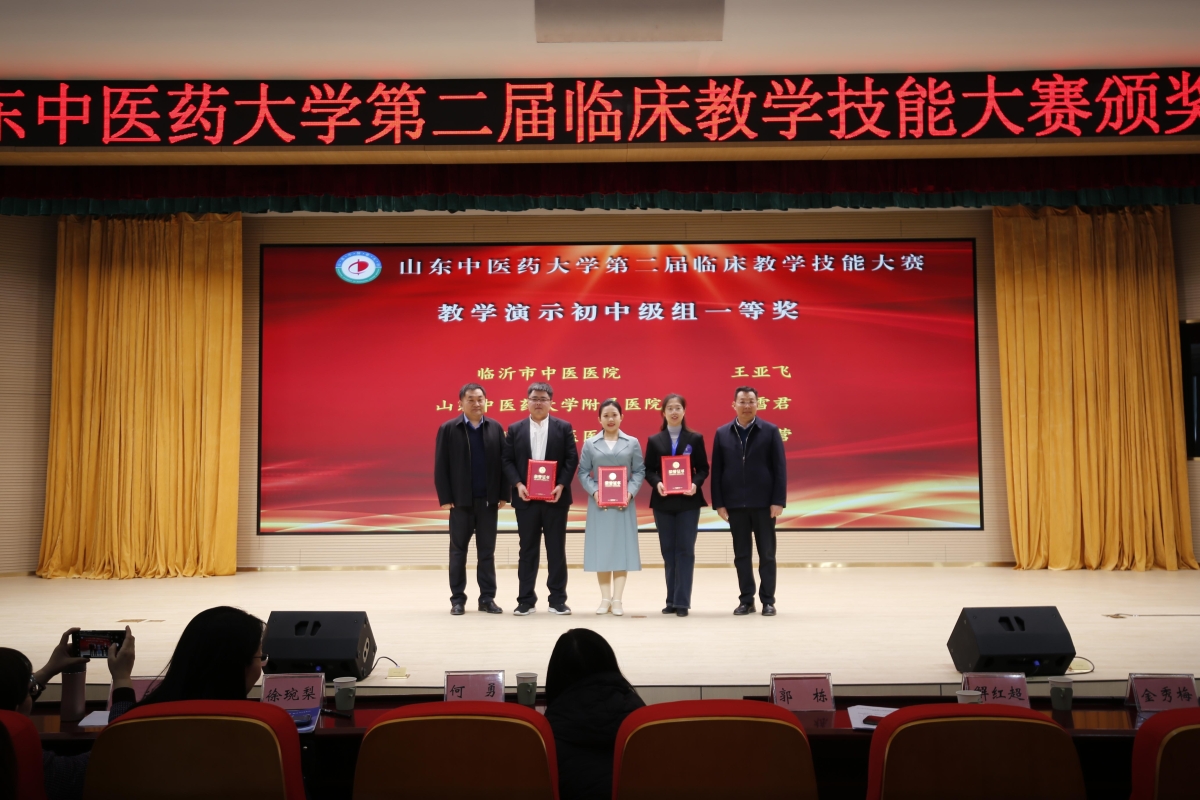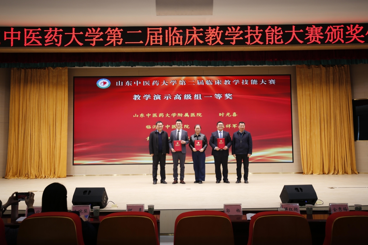 2023.12.2612月23日,山东中医药大学第二届临床教学技能大赛在临沂市中医中文av 举行,中文av临床医师获最佳教学设计奖1项,最佳现场演示奖1项,一等奖2项,二等奖1项,优秀教学组织奖1项。