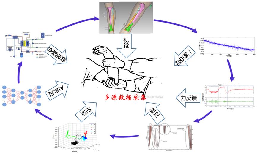 1、 量化“手感”经验:传统正骨依赖医师的“手感”和经验判断。多源信息采集系统可以实时记录施术者手部的三维运动轨迹、施加的力度大小、方向、速度以及患者局部组织的生物力学响应。这使原本主观、模糊的“手感”变得可视化、可量化、可存储。