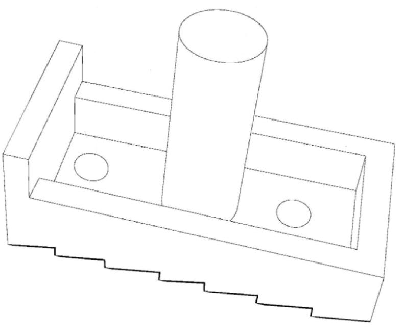 下融合体与上融合体对应结合,其上端(与上融合体相接处)中央开设有第二凹槽,该凹槽的中央则设置有用于连接的螺栓。在下融合体的下端(即植入后与下方椎体接触的面),同样开设有第二稳定槽。与上融合体类似,在第二稳定槽的槽底也设置有第二羟基磷灰石层。