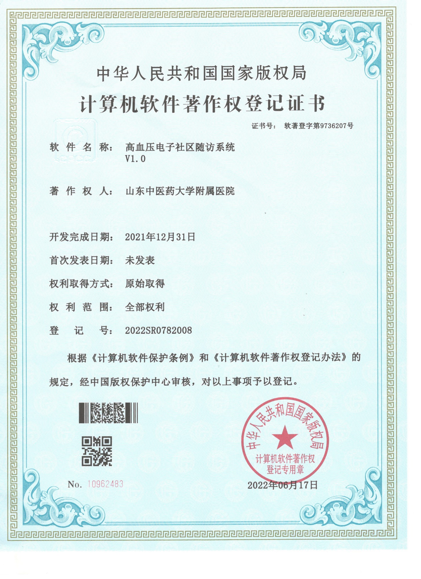 成果名称:高血压电子社区随访系统V1.0