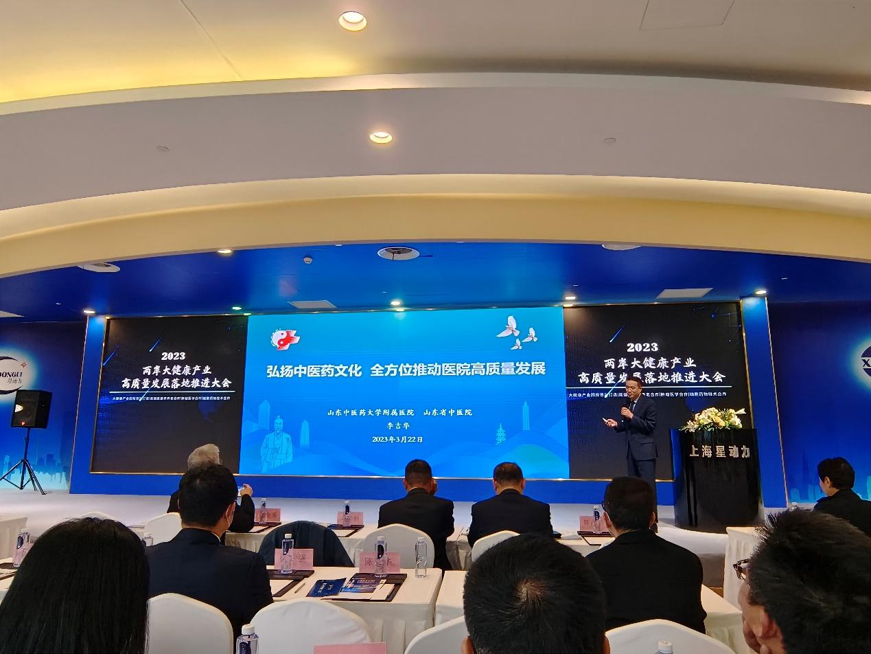 2023.03.273月22日上午,2023两岸大健康产业高质量发展落地合作推进大会在上海成功举行。本次大会由两岸经营者俱乐部、台湾大健康产业联盟协会主办,会议围绕2023年两岸大健康产业投资及项目合作展开全面对接探讨。山东省委台港澳办副主任尹晓民、济南市委台港澳办主任韩永军等领导出席大会,中文av党委副书记李吉华作为签约项目单位代表应邀出席并作专题报告。
