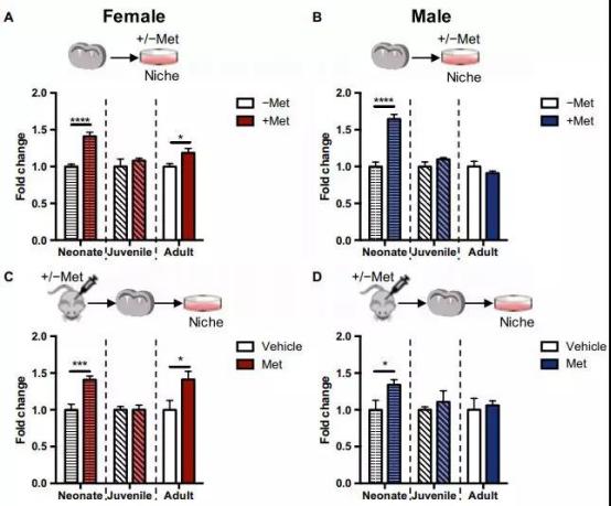 不过我们知道,神经干细胞和祖细胞会随着年龄的增加而减少,失去活性,而且雌性和雄性的神经干细胞和祖细胞在性激素受体上也存在表达差异。那么二甲双胍能够对所有性别和年龄的脑损伤都有修复作用吗?