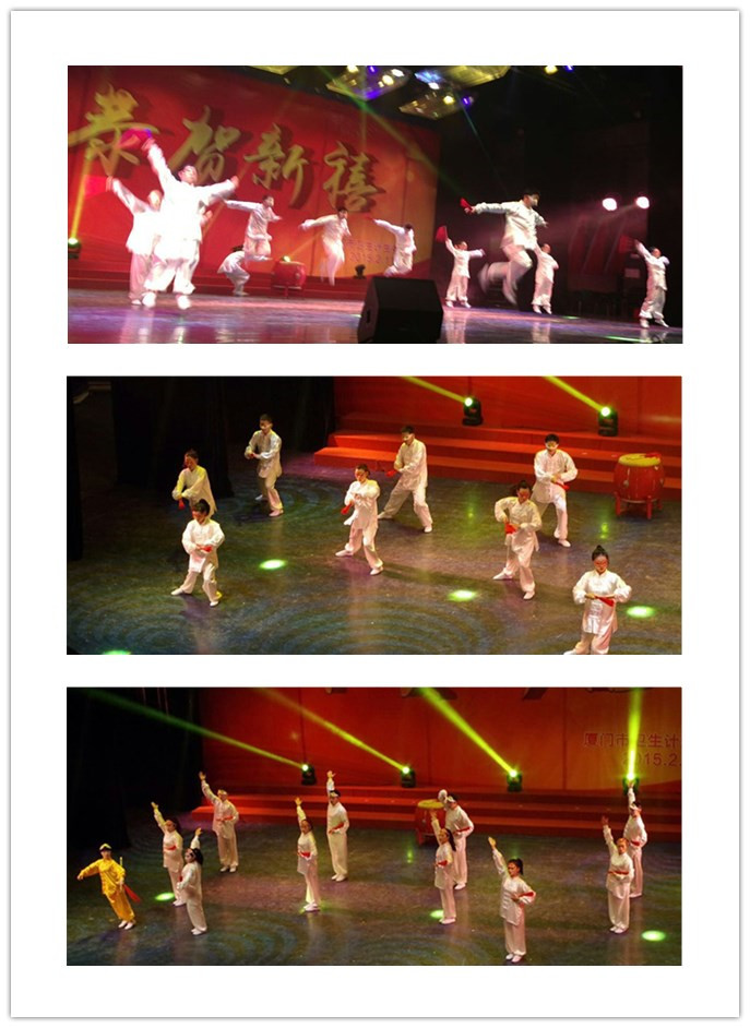 2月11日厦门市卫计委及市总工会举办的春节联欢会,在厦门青少年宫隆重举行。本次活动,在院工会庄建民主席、柯巧芸、范善云副主席的大力支持下,选派各科工会文艺骨干,代表海沧医院参加此次的节目演出——《中国功夫》,其中包括四部分内容:扇舞翩起、舞剑挂穗、铿锵搏击、桴鼓雷动。