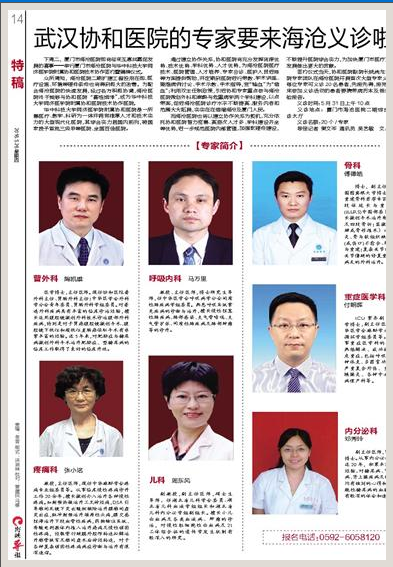 签约仪式当天,协和医院副院长姚尚龙将带领该院专家团队在海沧医院开展首次大型专家义诊活动。每位专家可义诊20名患者,先报先得,报完即止,前来参加义诊活动的患者要携带病历本及相关检查检验报告。