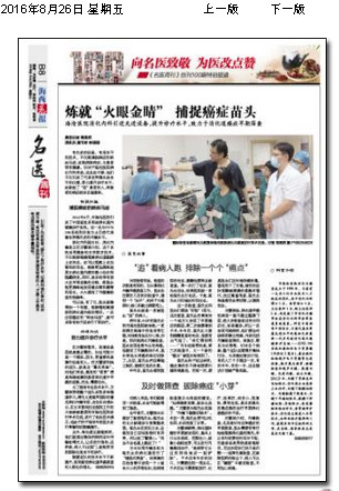 消化内科副主任、消化内镜室主任方慧祺介绍,这个系统采用最新的光学数字技术,不仅能够精确观察消化道黏膜上皮形态,还可以观察上皮血管网的形态,能够 更加清晰地显示消化道内壁的微小组织和隐藏病变。同时,该系统带有放大及窄带成像的功能,使医生能更清晰地发现微血管和腺管的变化,大大提高了内窥镜检查 的准确率。