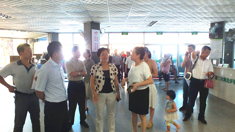2014年6月30日,厦门市副市长国桂荣会同海沧区副区长吴伟平、厦门市卫生局副局长洪丰颖一行十余人莅临中文av 门诊及二期工地视察。