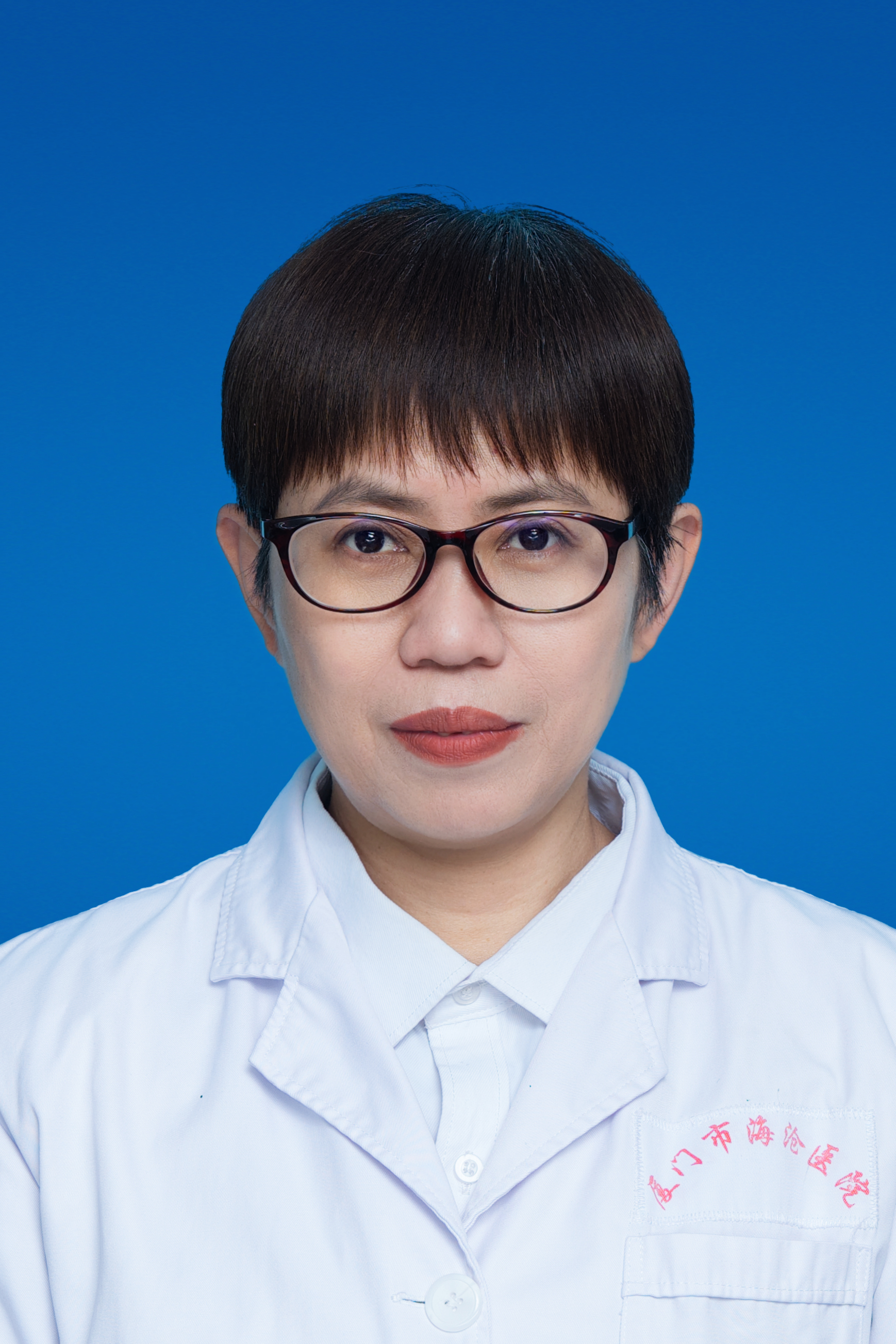 女,主任医师,呼吸内科主任,福建省医师协会呼吸分会委员,厦门市医学会呼吸分会副主任委员,厦门市医师协会呼吸分会总干事。参与省市级科研2项,主持市级科研1项,获得省市级科技进步奖1项,国家级、省级医学刊物发表10余篇学术论文。参编医学专著2部。1990年8月毕业于福建医科大学医学系临床医学专业。毕业后一直在呼吸内科(肺科)从事临床工作。除了呼吸系统常见病多发病的诊治外,擅长胸部肿瘤良恶性的鉴别诊断及支气管镜微创介入治疗,以及重症肺炎、呼吸衰竭等疾病的救治。对慢性咳嗽的诊治经验丰富。熟练掌握支气管镜检查及治疗技术,经皮肺穿刺活检术,内科胸腔镜检查及治疗术。