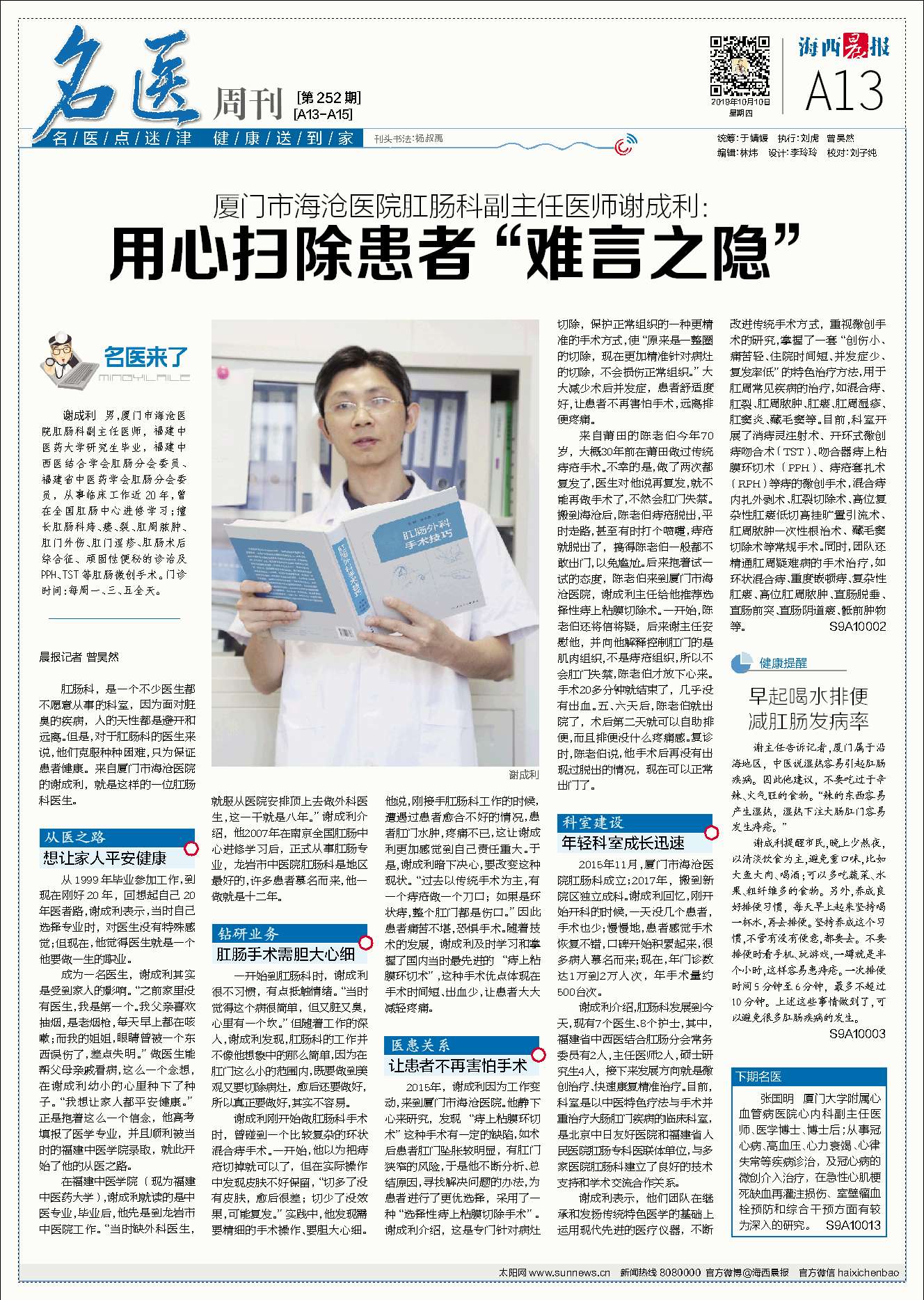 中文av 肛肠科副主任医院谢成利:红心扫除患者“难言之隐”