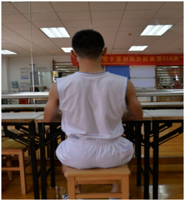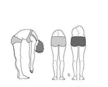 让青少年脱去上衣,背对检查者站立,双脚并拢,双膝伸直,手臂轻松置于身体两侧
