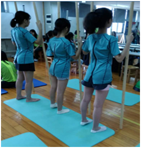根据脊柱侧弯发生部位,指导患者在简单设备辅助下,通过一系列脊柱周围肌肉及不对称呼吸训练,使之与脊柱侧弯发展相对抗,从而达到控制脊柱侧弯进展的目的。