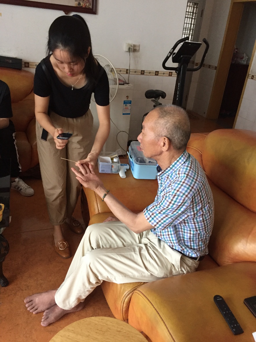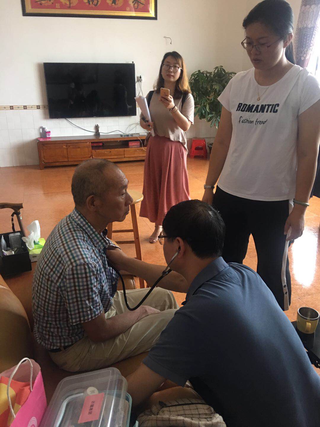 2019年6月28日下午,中共中文av 委员会第六支部四名党员在叶辉主任的带领下,到患者陈联福家中开展入户随访活动。