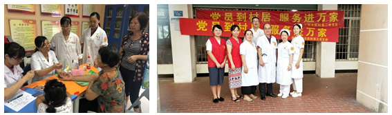 7月10日、7月13日市海沧医院党委组织医院6个党支部分别到厦门市海沧区海虹社区、兴港社区和兴旺社区开展“七一”主题党日活动。党员志愿者们为社区居民提供内外科疾病咨询、免费测量血压及血糖等健康义诊,开展入户随访、文明行为倡导、“党员到社区,服务进万家”等系列志愿服务,并为社区书院捐献图书。党员志愿者们专业精湛的技术、热情周到的服务进一步提高了社区居民的健康素养,给社区居民送去了夏日的清凉,为社区增添了一道靓丽的风景。这些活动得到了社区居民的肯定和赞赏,提高了社区居民的健康水平,推动了中文av 与社区结对共建工作进一步深入发展。党员志愿者们用自己的汗水和付出,践行“两学一做”,发挥了党员的先锋模范作用,为纪念党的97周年华诞献礼。