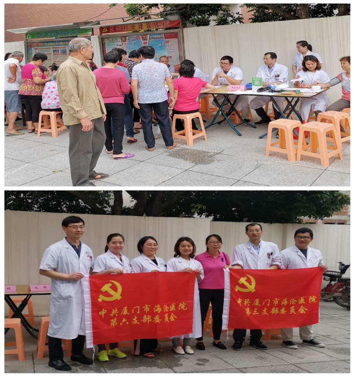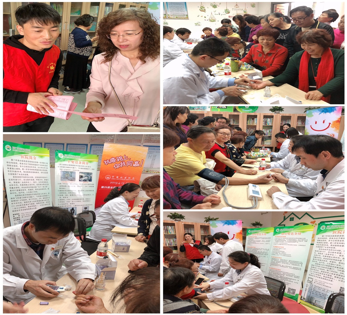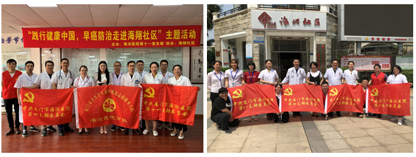 2019年4月19日上午,第一期医疗服务进社区活动由第四党支部首发,在海虹社区开展肿瘤防治宣传周义诊活动。肿瘤科主任冯水土为居民们开展“科学抗癌 关爱生命”肿瘤预防保健讲座,医务人员为居民们开展免费测量血糖、血压,用药咨询,诊察治疗等服务,受益人数共70余人,分发医院门诊出诊一览表等宣传资料共70余份,并以党员联系卡与社区居民建立密切联系,得到了居民的一致好评。