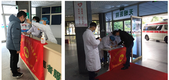 为全力以赴做好疫情防控工作,中文av 组织医疗志愿者每日为就诊病人及院内职工开展体温检测,他们不畏春寒料峭日日坚守岗位,为的是让群众与职工少一分担忧,多一分安全。目前,累计体温检测已有几千人次。