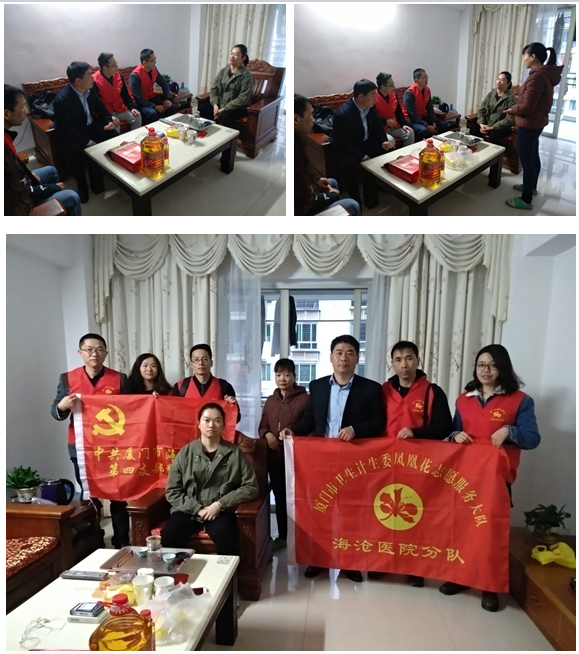 2019年2月01日,春节前夕,中文av 第四支部党员冯水土、林勇、郑志高、林雅萍同志和第五支部党员陈金燕同志在海虹社区书记吴海阳同志、组织委员林晓琳同志的带领下,利用下班的时间带着生活用品(食用油和米)来到了对接的社区困难户陈小云(进行性肌营养患者)家中,带去新年的慰问。在陈小云家中,冯水土等医务人员详细询问陈小云近段时间病情变化的情况及存在的不舒服,详细帮她做了体检,交代了她生活中需要注意的事项。同时社区吴海阳书记、支部冯水土书记详细询问了对接户家庭中生活中存在的困难,详细替对接户提出可行的建议,替对接户解决实际的困难。
