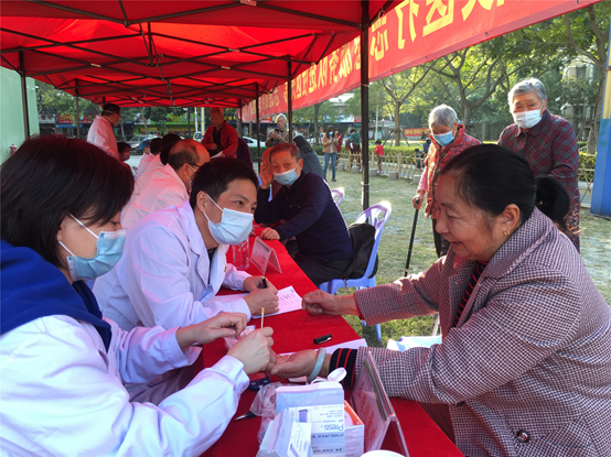 在活动现场,凤凰花志愿者向老年人开展卫生宣教活动,派发宣传手册,普及新冠肺炎、冬季传染病,耐心地为群众测量血压、血糖,医师们认真聆听老年人健康诉求,开展骨科、心血管内科、呼吸内科等相关疾病的筛查与诊疗,并针对常见病、慢性病作健康指导。通过义诊,让老年人认识到养成良好生活习惯的重要性,同时也强化他们的卫生健康意识。