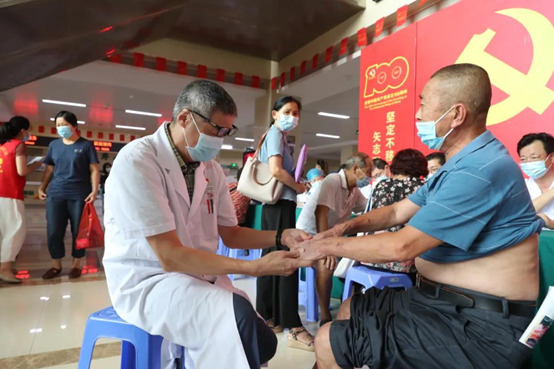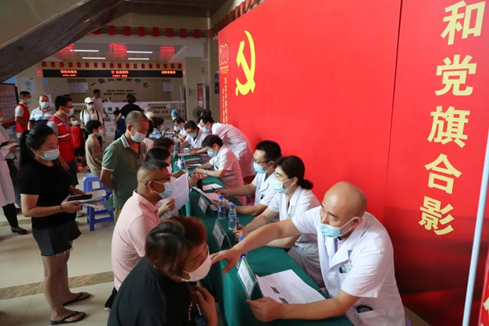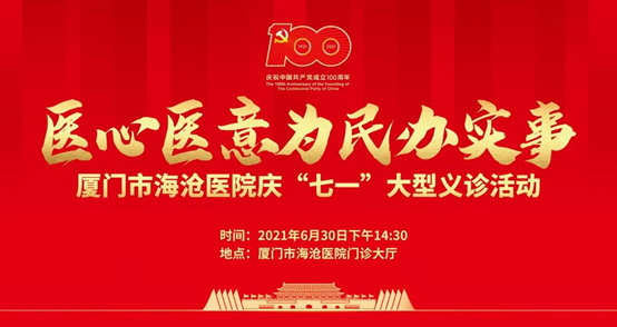 为庆祝中国共产党成立100周年,进一步推动党史学习教育走深走实,纵深推进“我为群众办实事”活动,不断增强人民群众的健康获得感、幸福感,6月30日下午,海沧区委组织部党支部与中文av 党委于市海沧医院1号楼一楼大厅联合开展医心医意为民办实事——庆“七一”大型义诊活动。