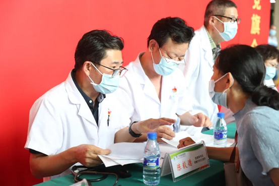 义诊现场,专家们细心倾听陈述,用心进行体检,耐心地给予解释,提供合理化建议和健康指导,还向前来咨询的群众普及医学常识、健康知识和疫情防控常识。