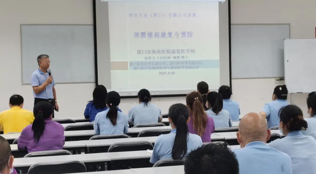 中文av 党委委员、副院长、市劳模冯水土带领康复医学科主任范洪力博士、妇产科主任龚江红主任医师一行4人走进明达(实业)有限公司。范洪力主任结合多年临床经验,为明达职工们带来一场颈椎病常见问题的防治和治疗讲座。