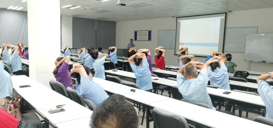 通过近1个小时的讲解及现场示范,既有理论,又有实际的保健动作练习,内容通俗易懂,可操作性强,十分接地气,对他们日常工作和生活帮助很大,大家十分欢迎。