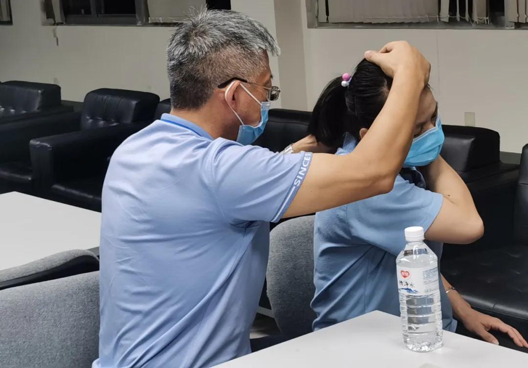 同时,专家团队为现场职工提供免费义诊,义诊项目包括:中医推拿、体检报告讲解等。义诊专家们耐心地询问每一位职工的情况,根据咨询者的描述和他们的身体状况,专家现场给予建议,为70余位职工提供温馨服务。