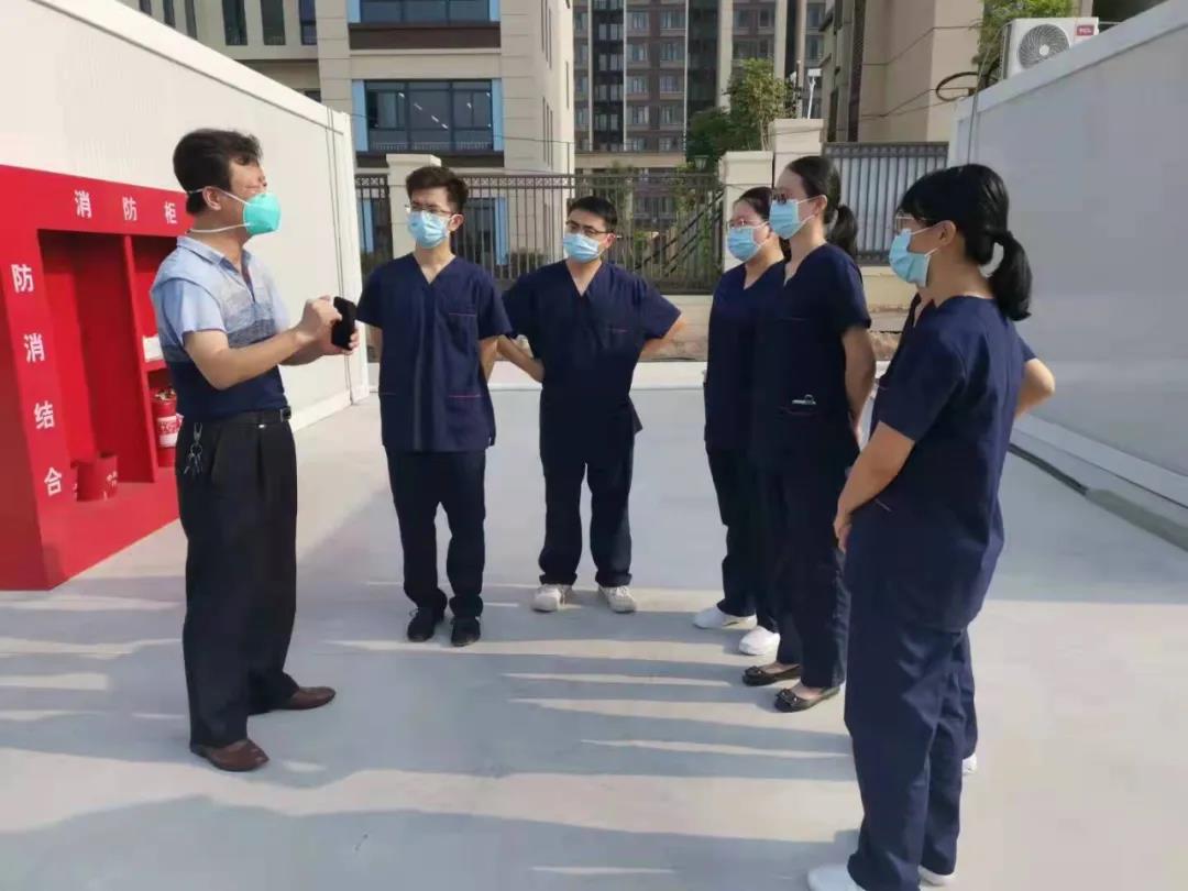 体检部行政副主任、耳鼻咽喉科副主任医师李刚是这次医疗队的队长。他和战友们将在这里围绕四个任务开展工作:一是现场的感控巡查,检查垃圾分类是否合格,通道是否合理,三个组的感控专员分别负责三个点的感控专项巡查,发现问题及时上报并即刻进行整改;另外还进行严格规范的防护服穿脱指导和监督;二是核酸采集;三是抽血进行新冠肺炎抗体检查;四是进行医疗保障,为有不适的隔离者进行相应处理。