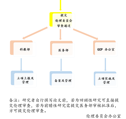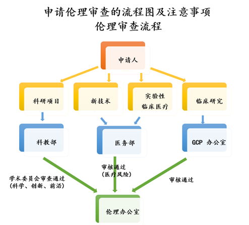 (2)新技术、新项目临床应用和实验性临床医疗:主要研究者在伦理审查申请流程前,需经过医务部对研究者申报资格的审核并获其批准。