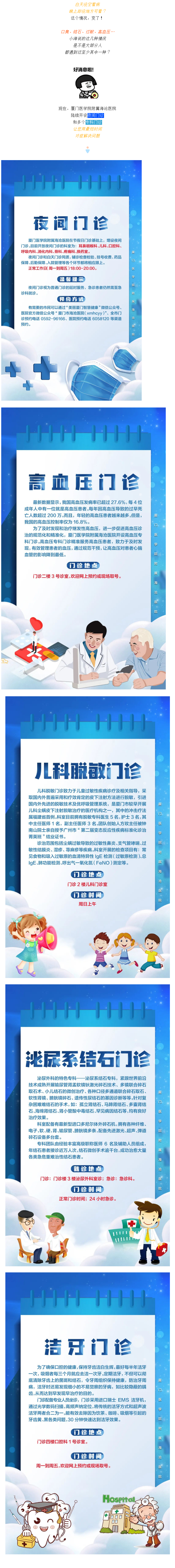 开设夜间门诊,还有了高血压、洁牙、结石、脱敏专科门诊~