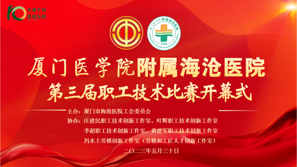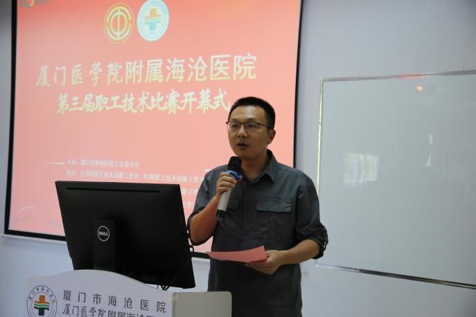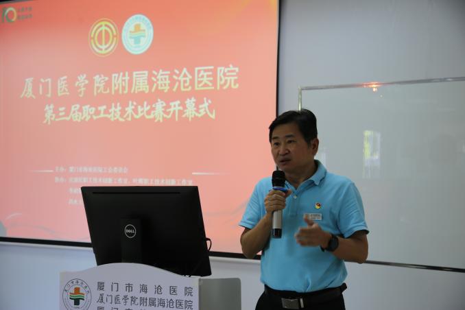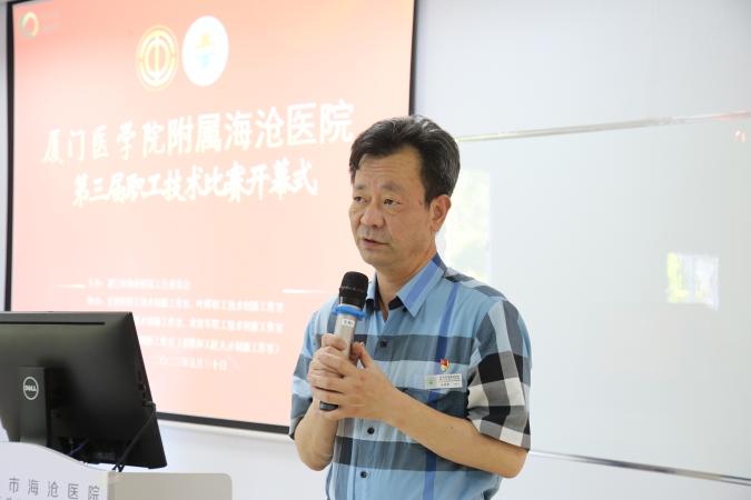 为大力弘扬劳模精神、工匠精神,激励广大医护工作者立足本职岗位学习技术的热情和提高技能的意愿,2023年5月30日下午,中文av 工会在3号楼第一会议室举办了以“礼赞二十大·筑梦新时代”为主题的第三届职工技术比赛。此次比赛得到了院领导的高度重视,党委书记庄建民,党委副书记、工会主席陈毅德,党委委员、副院长叶辉出席大赛的开幕仪式,开幕式由工会副主席黄建军主持。