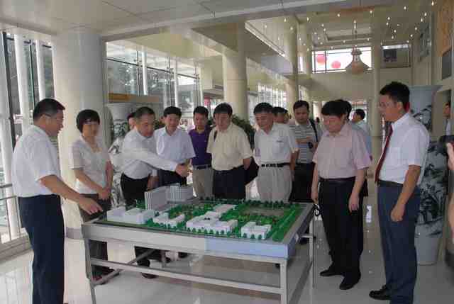 国家卫生部党组书记、副部长张茅,国家中医药管理局副局长吴刚,山东省人民政府副省长王随莲等领导观看国家中医临床研究基地综合楼工程沙盘