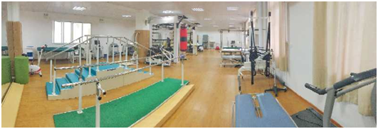康复医学科场地宽敞,建筑面积750余平方米,训练设备完善,配备有德国进口体外冲击波治疗仪、平衡评定与训练系统、上肢功能重建系统、电动起立床、四肢联动训练器、关节CPM训练系统、体适能训练系统、SET悬吊系统、脑功能障碍治疗仪、减重步态训练仪、脑瘫儿的康复姿势矫正椅、儿童水疗设施、儿童运动训练设施、多感官综合训练系统、感觉统合训练系统,另专门为儿童患者配备有游乐场。