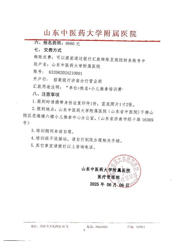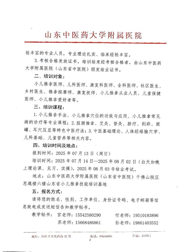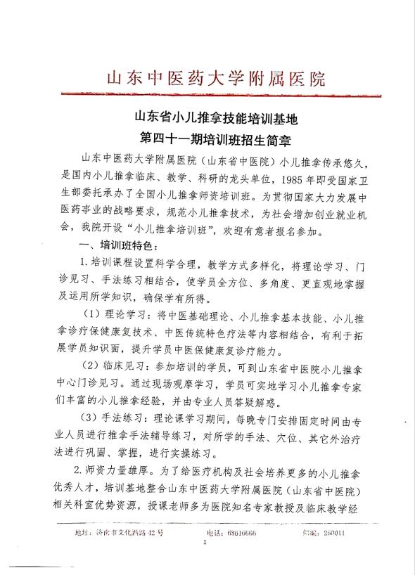 山东省小儿推拿技能培训基地第四十一期培训班招生简章