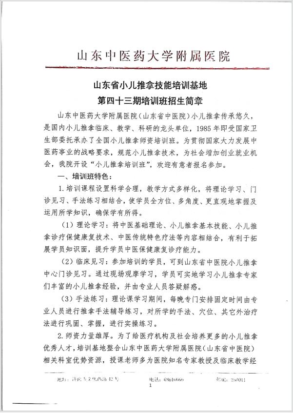 山东省小儿推拿技能培训基地第四十三期培训班招生简章