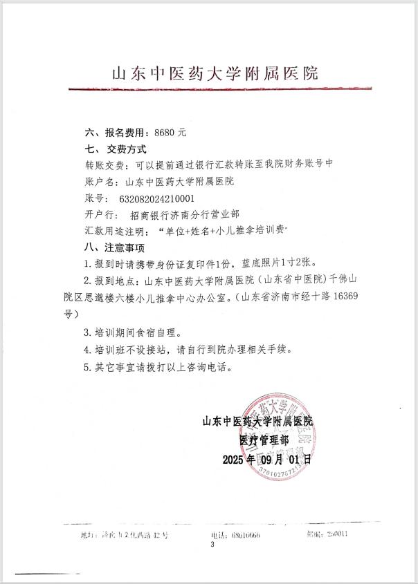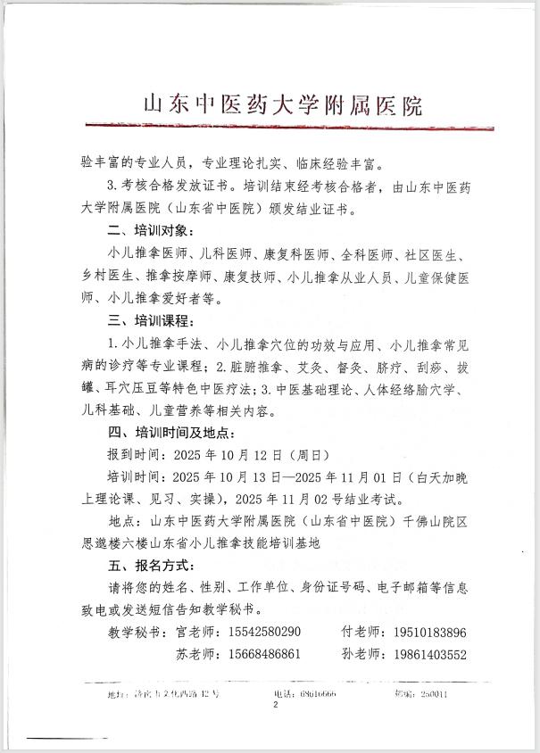 山东省小儿推拿技能培训基地第四十一期培训班招生简章