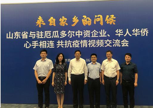 2020.07.016月30日上午,山东省外事办举行了山东省与驻厄瓜多尔中资企业、华人华侨共抗疫情视频交流会。山东省外事办公室主任蔡先金、山东省卫健委副主任秦成勇出席会议。中文av肺病科副主任医师何荣参加线上交流。