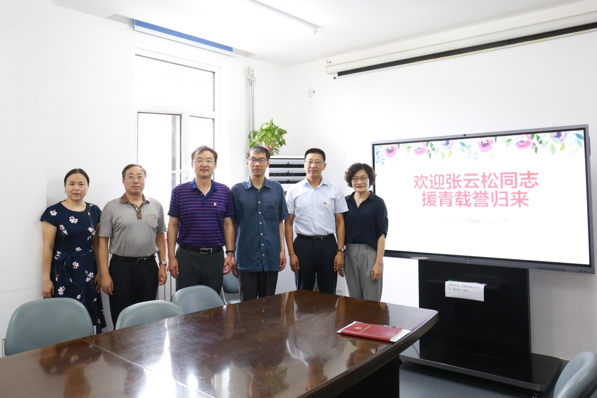 2019.08.028月1日上午,中文av 在东院区(千佛山院区)办公楼会议室举行欢迎会,迎接援青干部人才张云松圆满完成援青任务,载誉归来。大学副校长、中文av 党委书记庄严,院长任勇,副院长薛一涛参加欢迎会。