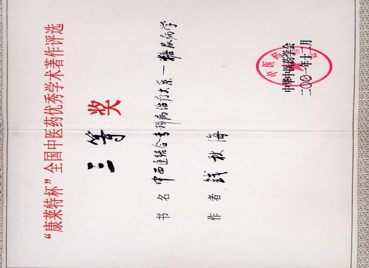 13、学术专著《中西医结合诊疗大系·糖尿病学》,2001年12月获中华中医药学会全国中医药优秀学术著作奖三等奖(第1位,个人专著)。