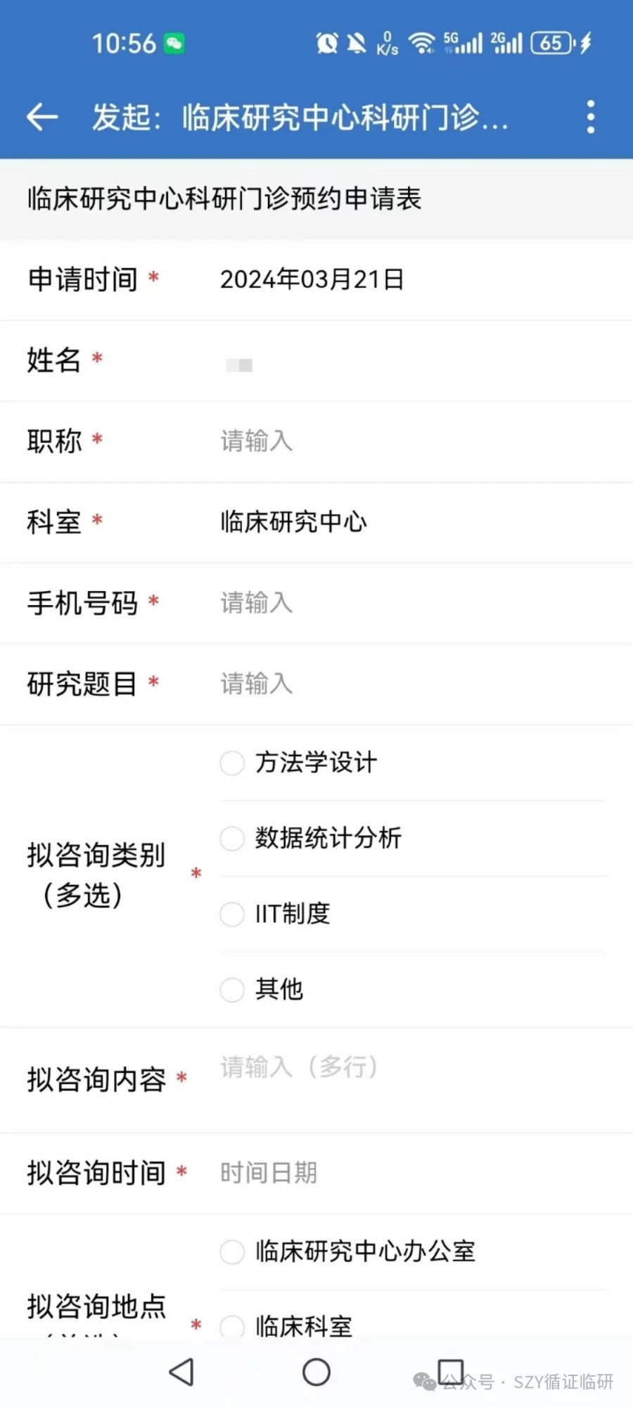 2024.03.26为帮助中文av职工及研究生提升临床研究水平,提高临床研究质量,解决医务人员在临床研究方案设计等方面的“疑难杂症”,临床研究中心在中文av OA新增科研门诊预约流程。