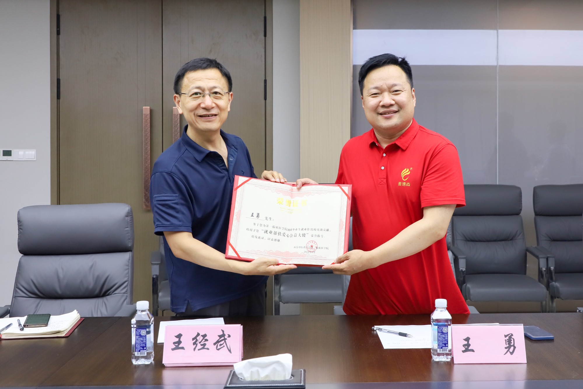 会上,王勇书记与中文av优秀毕业生屈佳乐同学现场签订了就业协议书,中文av 临床教育管理处处长王经武向王勇颁发了“就业帮扶爱心公益大使”荣誉证书。