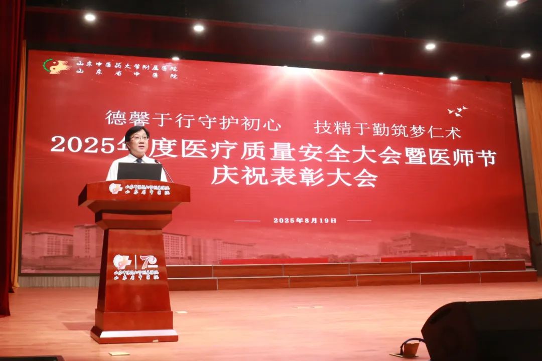 2025.08.20 来源部门:医疗管理部在第八个中国医师节到来之际,8月19日晚,中文av 在千佛山院区两用堂召开2025年度医疗质量安全大会暨医师节庆祝表彰大会。大学党委副书记、附属中文av 党委书记金锋出席会议并讲话,全体领导班子成员参加会议。会议由院长邓华亮主持。