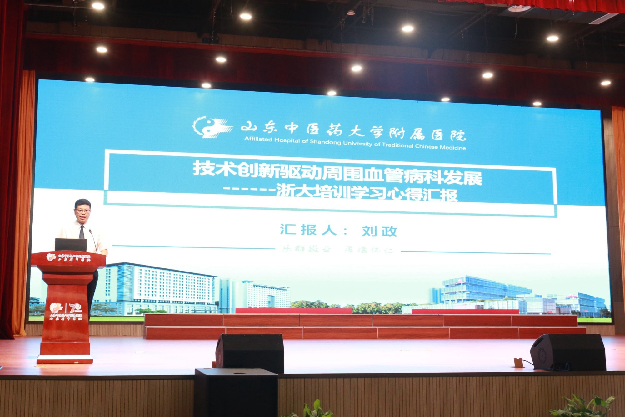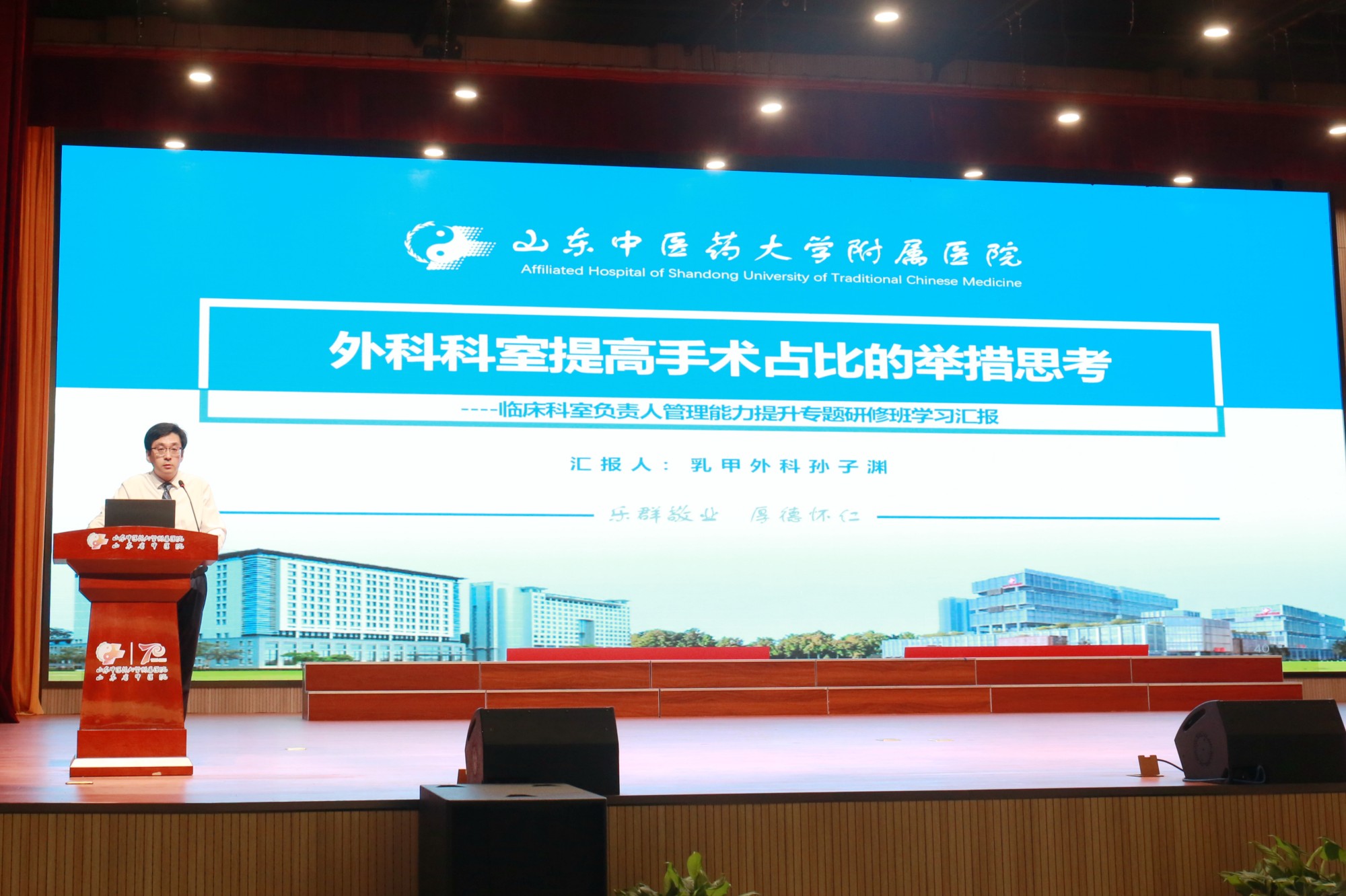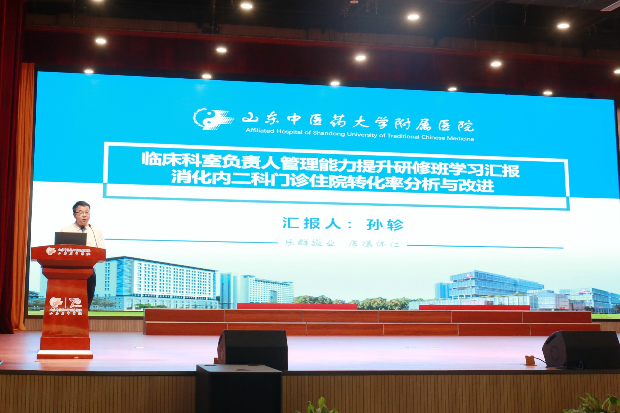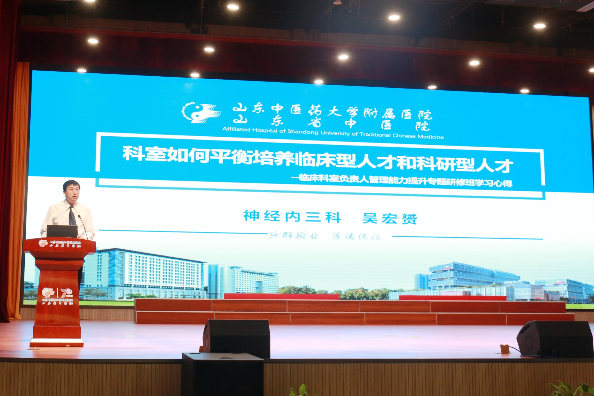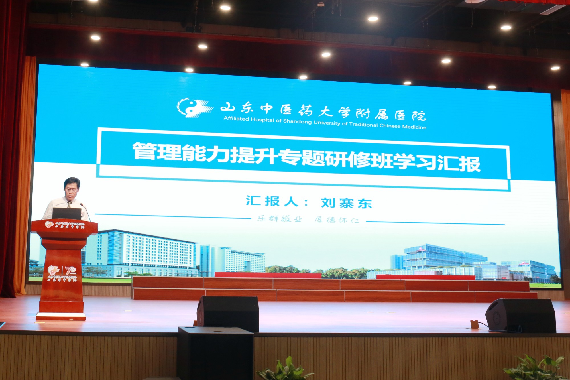 周围血管病科刘政主任、山东省老年病中中文av 周庆博院长、肿瘤内科刘寨东主任、脑病三科吴宏赟主任、消化内二科孙轸主任、乳腺甲状腺外科孙子渊主任、脊柱骨科郝延科主任、运动损伤骨科齐尚锋主任、儿科张桂菊主任、放射科王建国主任分别做管理能力提升专题研修班学习心得分享。