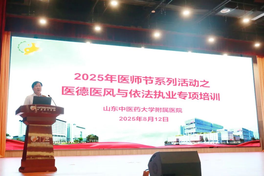 2025.08.14 来源部门:医疗管理部为进一步规范医务人员道德行为,弘扬崇高职业精神,践行社会主义核心价值观,在第八个中国医师节即将来临之际,8月12日下午,中文av 组织医德医风与依法执业专题培训。中文av 党委副书记、院长邓华亮出席会议并讲话,副院长李刚、徐向青参加会议。