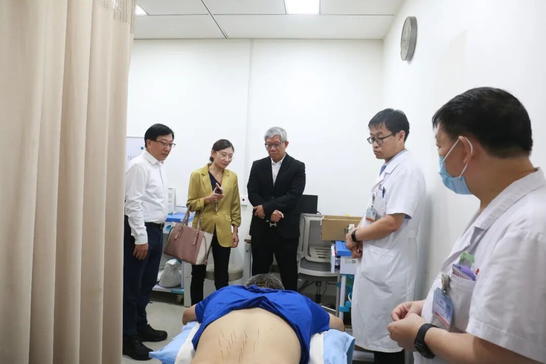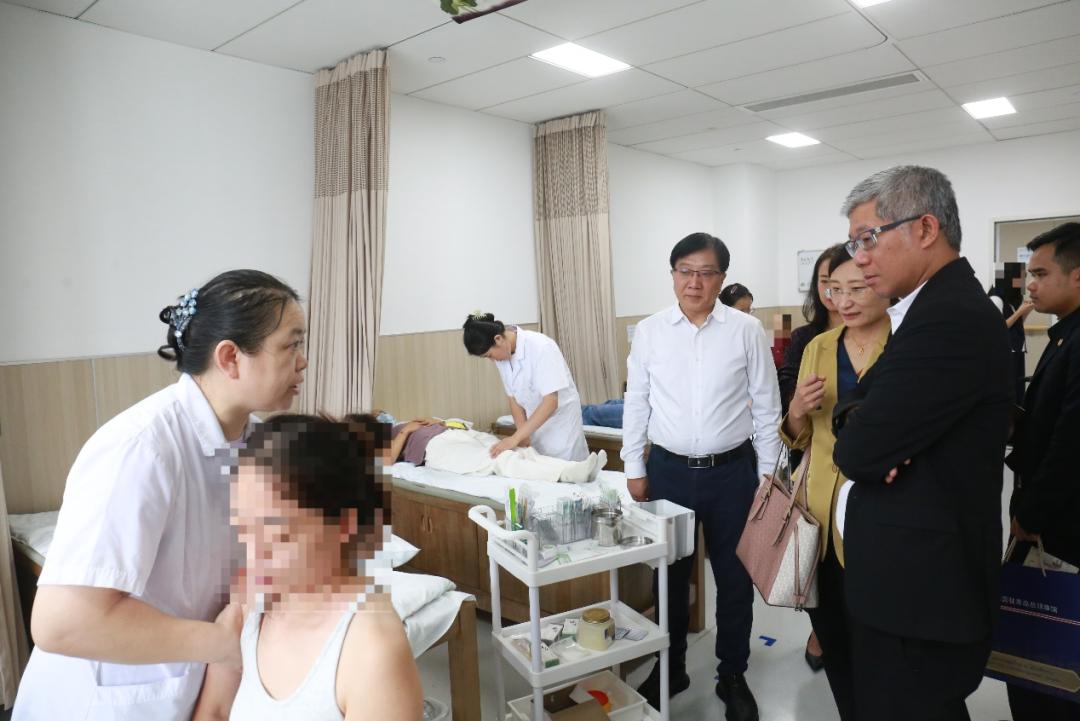 接着,访问团前往惠民楼,参观了针灸科、外治中心、推拿科、康复中心等特色科室,现场感受中医传统疗法的魅力。在尚德楼保健诊区,访问团成员还亲身体验了系统辨证脉学中医脉诊、特色针灸等保健服务,对中医的神奇效果赞不绝口。