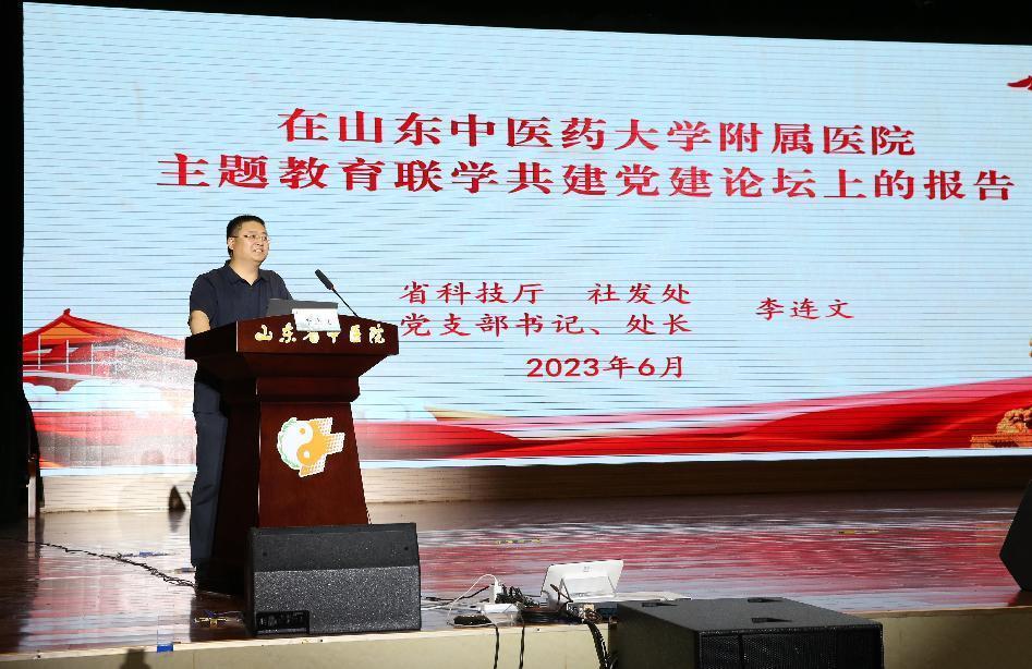 山东省科技厅二级巡视员董守义在致辞中指出,本次论坛通过联学共建方式,促进党建与业务深度融合,模式新颖,目标明确,主题突出,对推进“政产学研金服用”各类创新要素有效集聚和优化配置,促进我省中医药传承创新发展,实现医疗健康产业高质量发展具有重要意义。