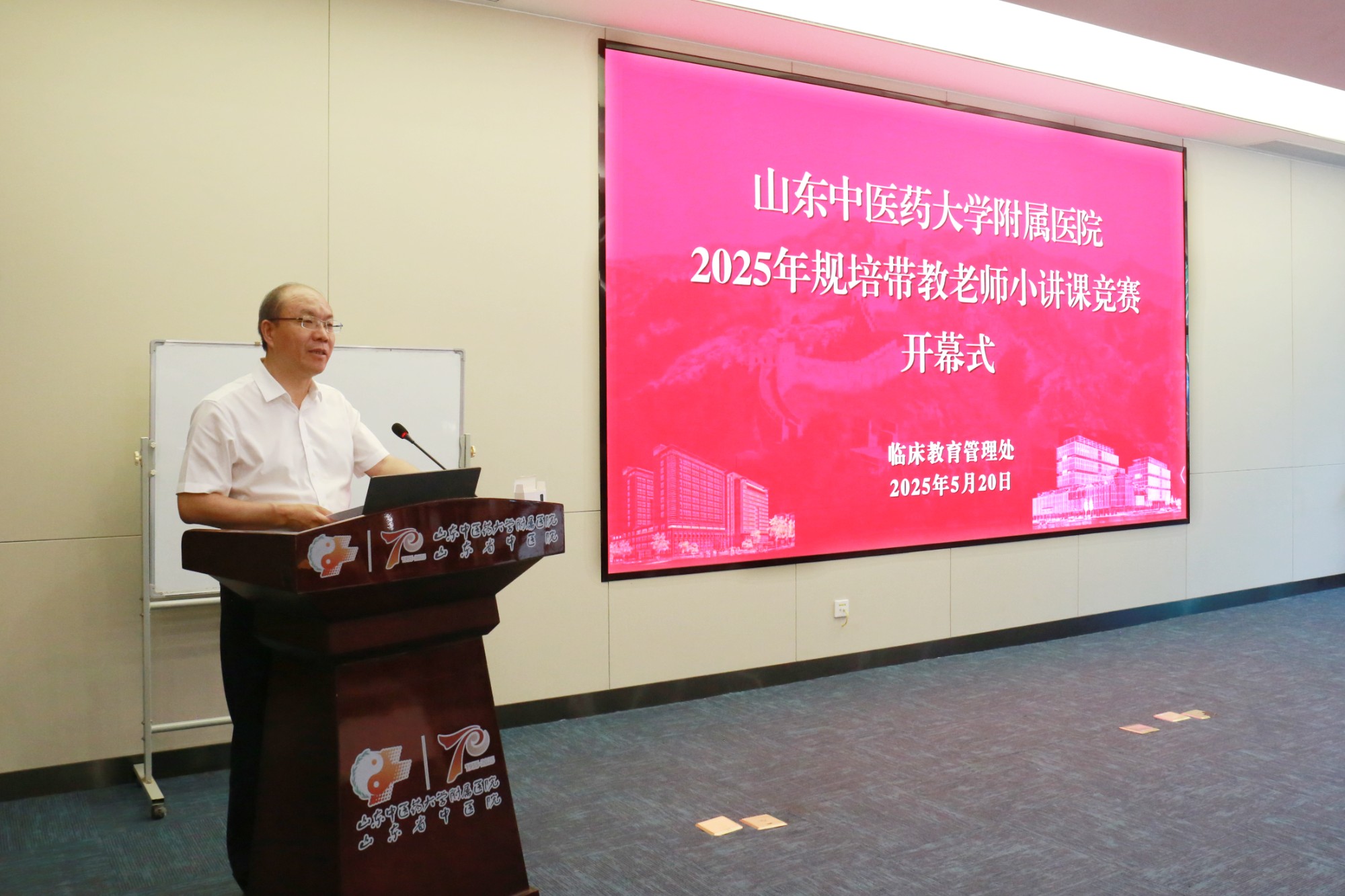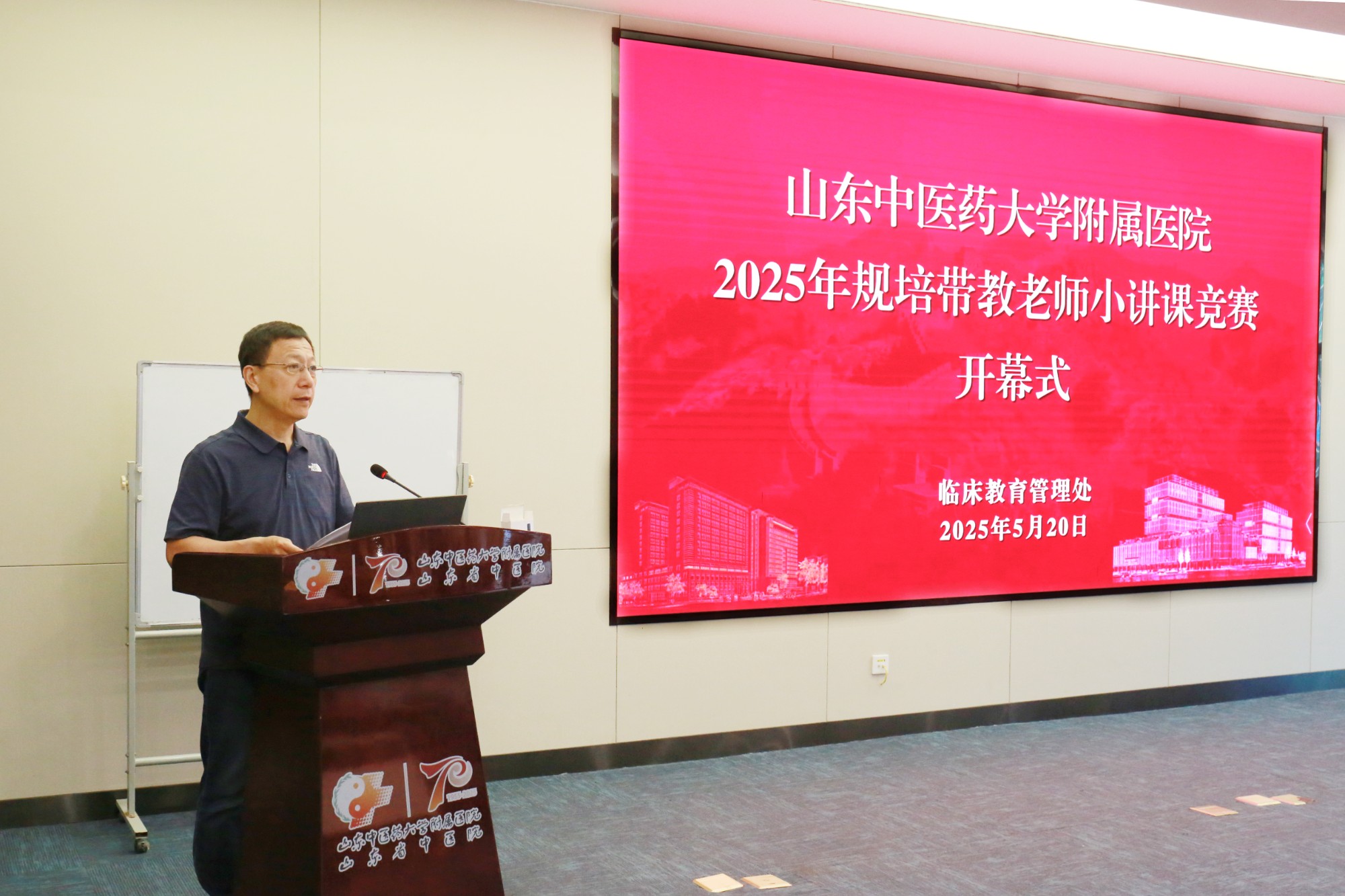 2025.05.21为进一步加强中医规培带教师资队伍建设,提高临床带教水平和能力,2025年5月20日,临床教育管理处成功举办2025年规培带教老师小讲课竞赛。中文av 副院长李刚出席开幕式并致辞,临床教育管理处处长王经武主持开幕式,中文av 12名青年带教老师参加竞赛,临床带教老师骨干、护理骨干70余人现场观摩。