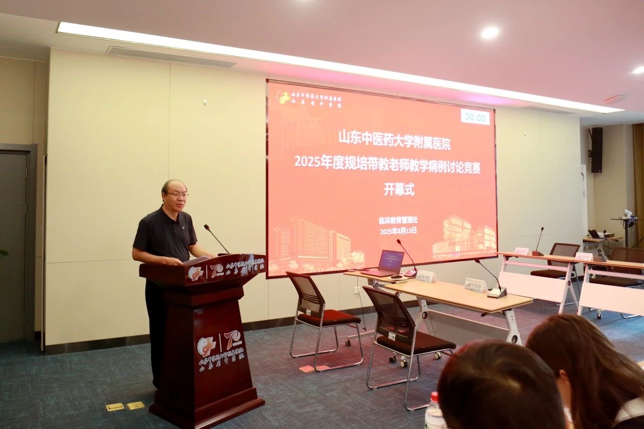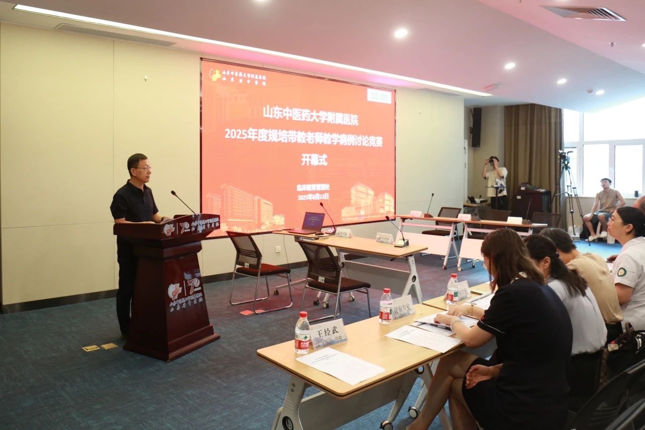 为深化中医医师规范化培训内涵建设,打造高素质临床师资队伍,2025年8月13日,临床教育管理处成功举办2025年度规培带教老师教学病例讨论竞赛。中文av 副院长李刚出席开幕式并致辞,临床教育管理处处长王经武主持开幕式,来自中文av 12个临床科室的优秀团队同台竞技,特邀泰安市中医中文av 同仁参与,与中文av临床带教老师、护理骨干等70余人共同观摩学习。